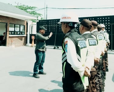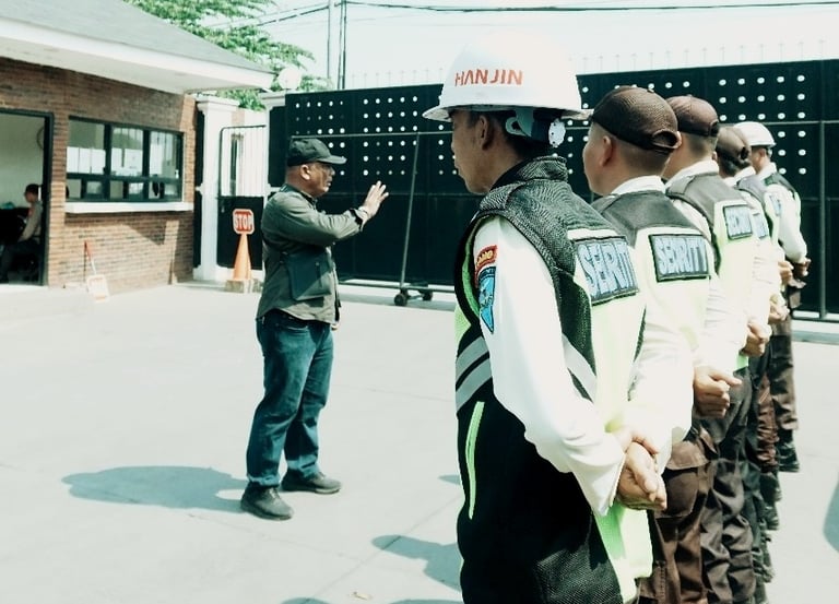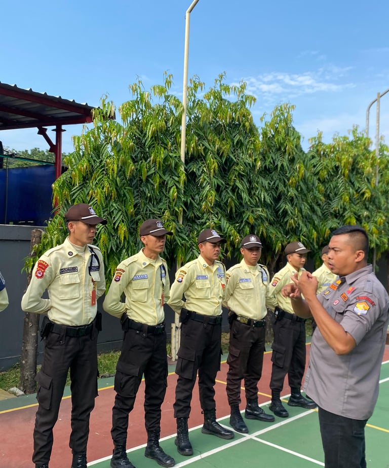 Personel satuan pengamanan yang terlatih melakukan apel rutin dan inspeksi harian guna memastikan kesiapan fisik, mental, serta kepatuhan terhadap SOP pengamanan aset perusahaan.